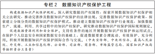 完善知识产权保护政策。健全大数据、人工智能、基因技术等新领域新业态知识产权保护制度。研究构建数据知识产权保护规则。完善开源知识产权和法律体系。完善电子商务领域知识产权保护机制。健全遗传资源获取和惠益分享制度,建立跨部门生物遗传资源获取和惠益分享信息共享制度。制定传统文化、民间文艺、传统知识等领域保护办法。建立与非物质文化遗产相关的知识产权保护制度。完善体育赛事节目、综艺节目、网络直播等领域著作权保护制度。完善红色经典等优秀舞台艺术作品的版权保护措施。完善服装设计等时尚产业知识产权保护政策。健全药品专利纠纷早期解决机制,制定相关配套措施。完善中医药领域发明专利审查和保护机制。健全绿色技术知识产权保护制度。完善高校知识产权保护管理规定。建立知识产权侵权损害评估制度。(中央宣传部、中央网信办、最高人民法院、教育部、财政部、生态环境部、文化和旅游部、市场监管总局、广电总局、国家林草局、国家中医药局、国家药监局、国家知识产权局等按职责分工负责)