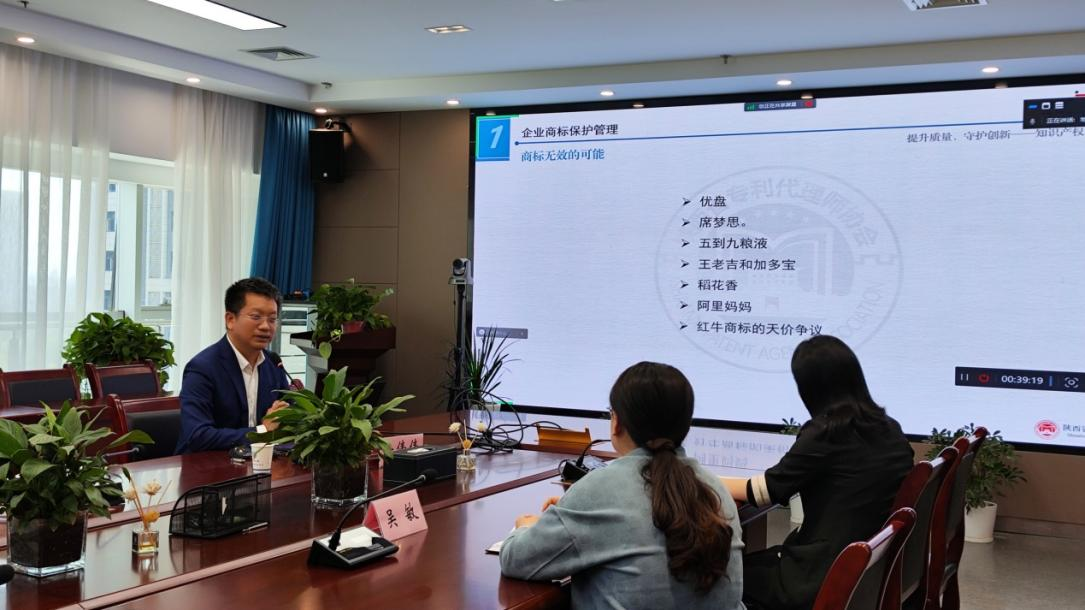 4月26日,在全国知识产权宣传周之际,西安鼎迈知识产权代理事务所副总经理安伟伟应邀为某企业做《企业商标保护管理与专利转化实务》专题培训讲座。企业负责人与知识产权相关人员参加活动。