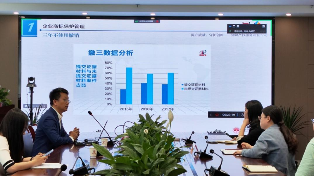 培训针对该企业产品和服务特点,详细阐述了什么是商标和专利,商标注册的意义、风险,商标无效、商标撤销、商标使用注意事项,专利及其专利转化的概念,高价值专利培育及其挖掘,转化提供保障机制的知识产权管理体系建设、专利转化过程中的专利信息利用、专利转化风险控制等。