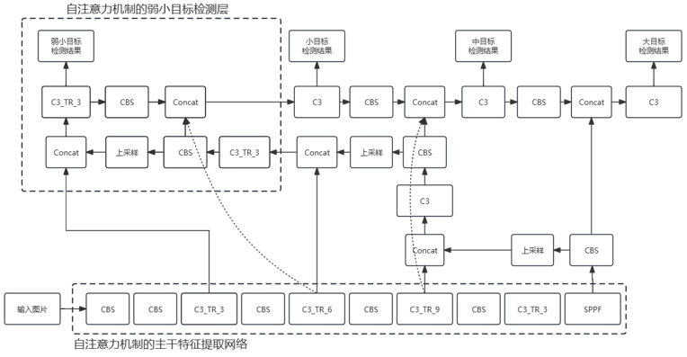 经过沟通,发明人重新提供了图2的网络结构,不仅将CBS结构、C3模块、双向特征金字塔网络体现在了网络结构中,同时还引入了C3_TR_3模块、C3_TR_6模块、C3_TR_9模块,以及弱小目标检测层、两条虚线连接的结构,并说明了可以带来的技术效果。通过这样的修改,使技术交底书的描述与网络结构图相对应,技术方案更加清楚、完整,而且引入的技术方案提高了技术方案的创造性。