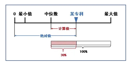 为了解决上述问题,以使模型具有良好的可操作性(特别是提高其自动化程度),需要构建一个“尺度”,其在逻辑上能够衡量在特定指标上单篇专利取值相对于样本整体所处的位置,即以“相对值”替代“绝对值”,来消除量纲和数量级(量级)的差异,同时其应当可以通过相对简单的计算实现、确保可操作性。