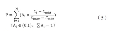 式(4)中,首先是通过将相同指标的计算值与最大计算值相除而将结果量纲归一,其次是将离散的计算值按照统一尺度折算为百分比,从而消除了不同指标的数量级的差异。基于此,可以对式(4)进行修改而得到式(5):