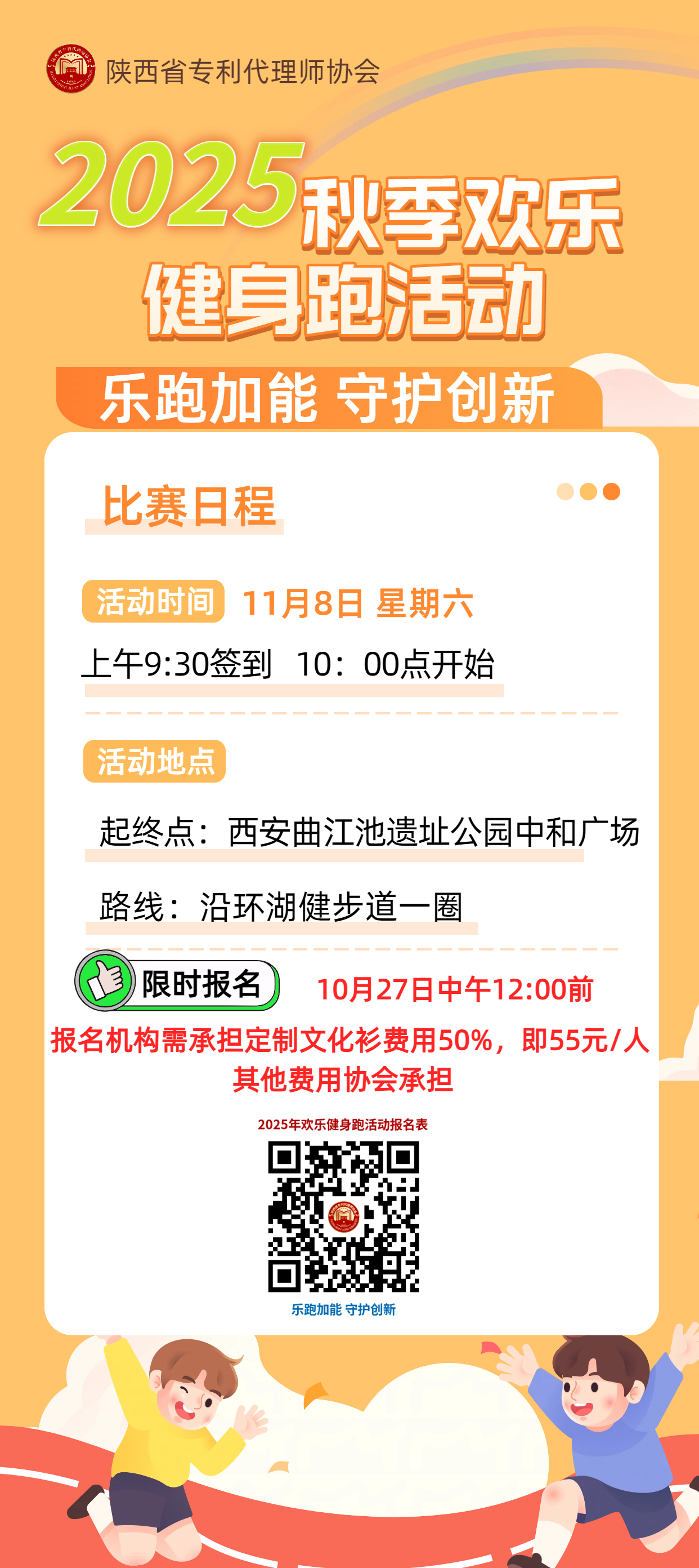 为丰富会员业余文化生活,展现我省专利代理行业活力与风采,经研究决定,将于2025年11月8日举办秋季欢乐健身跑活动(若因天气原因活动顺延)。现将有关事项通知如下:
