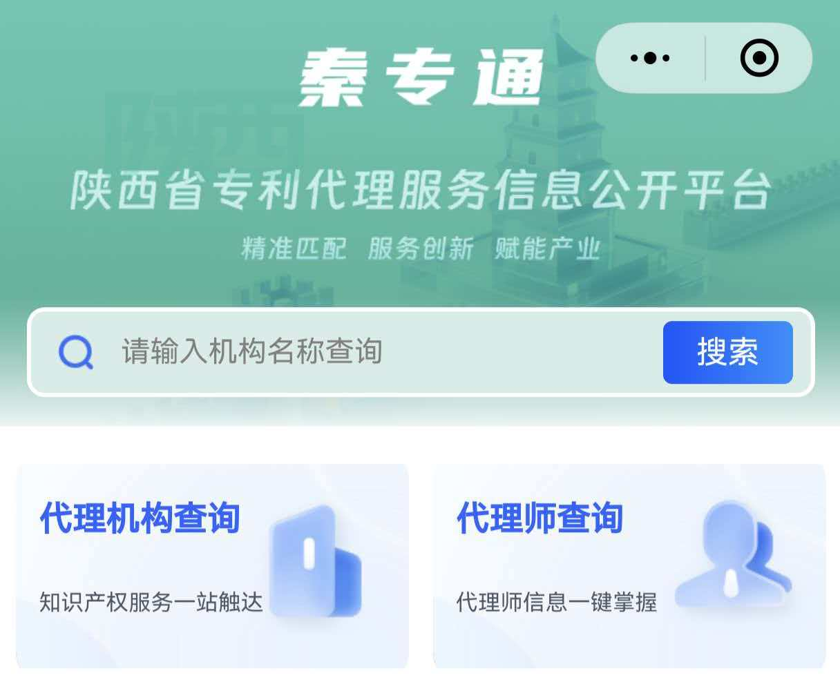 “秦专通 陕西省专利代理信息平台”小程序页面: