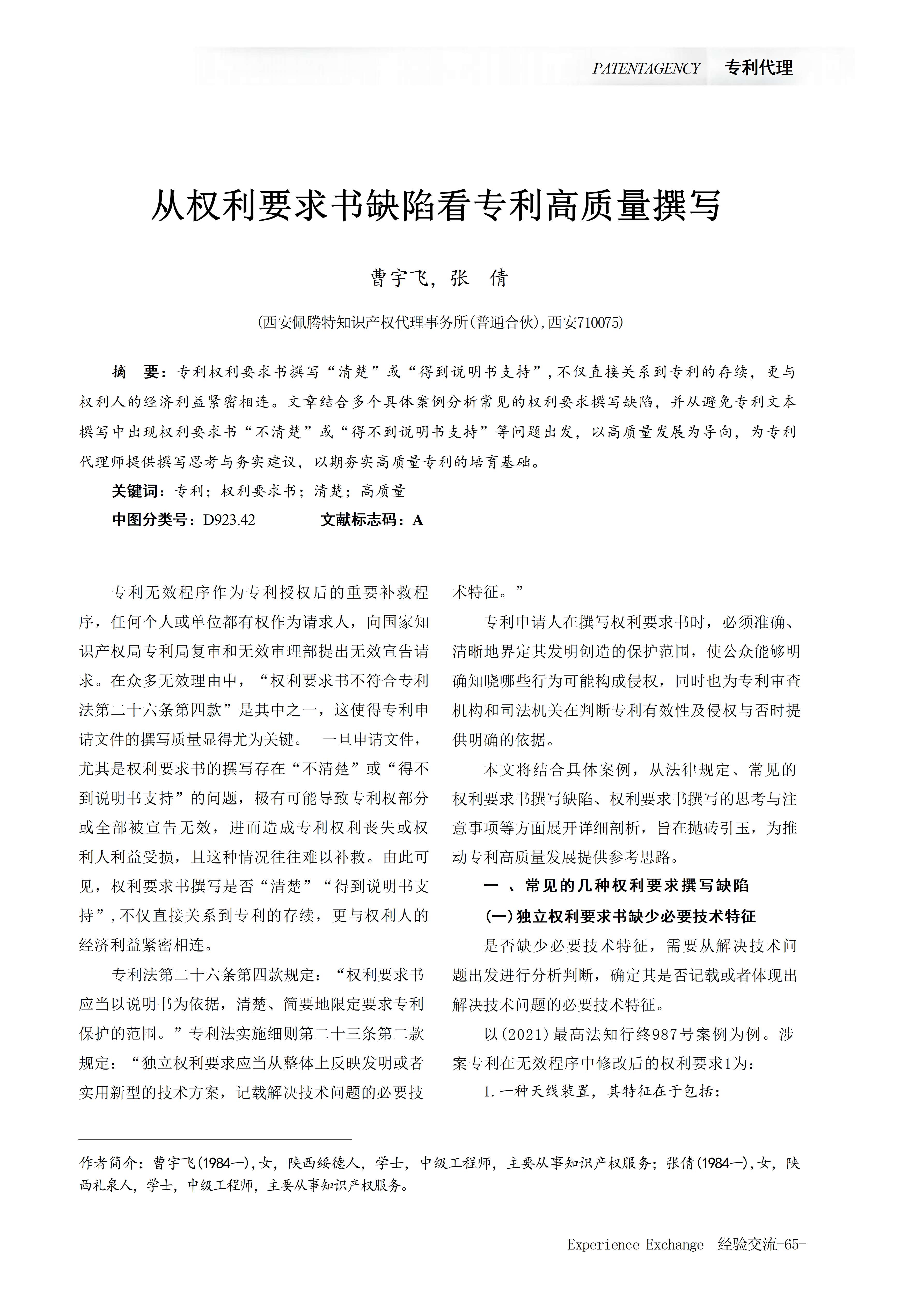 从权利要求书缺陷看专利高质量撰写